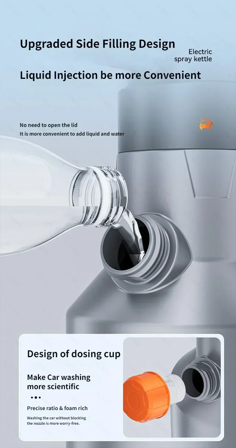 The SZUK Electric Foam Sprayer features a thoughtfully engineered handheld design that prioritizes comfort and ease of use. Its balanced weight distribution reduces fatigue, while the soft-grip handle ensures a secure and comfortable hold during extended cleaning sessions. Designed for efficiency, the sprayer allows users to maintain complete control of foam pressure and direction. Every detail—from the trigger mechanism to the angle of spray—was developed for intuitive operation. Its portability makes it suitable for car cleaning, gardening, and household disinfection tasks. Whether you are a professional detailer or simply enjoy caring for your vehicle at home, the ergonomic structure makes this sprayer accessible to everyone. The SZUK Electric Foam Sprayer combines sleek aesthetics with robust construction, ensuring durability even under frequent use. It’s ideal for users in busy environments, from city garages to countryside homes, where ease of handling and quick performance are essential. The compact body design also allows for convenient storage after each wash.