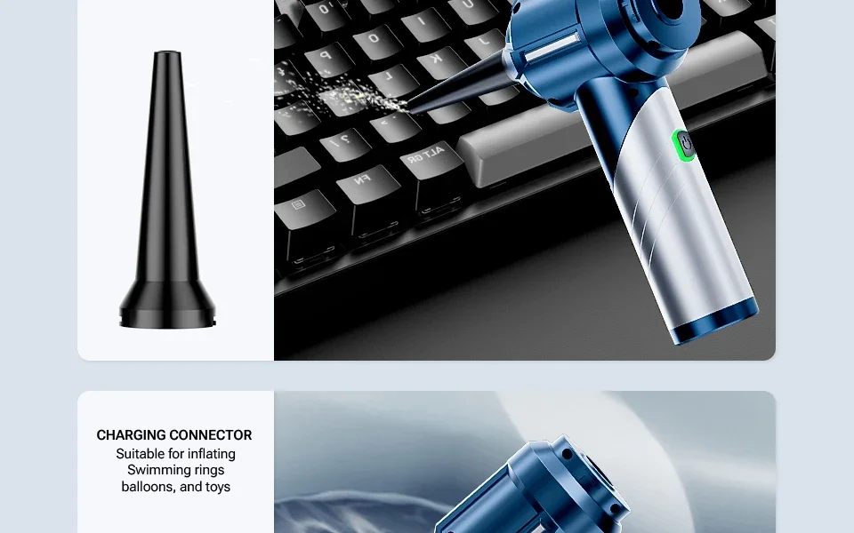 It’s really practical and affordable, so I repurchased a second set during the new promotion. I’ll recommend it to everyone! The suction power and blower function are excellent, it can be folded at 90°, has low noise, and the battery life is long, so you can take it out for cleaning anywhere, anytime, like at home, office, or outdoor camping.